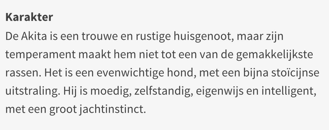 Laten we nog even kijken naar de karaktereigenschappen van de akita: